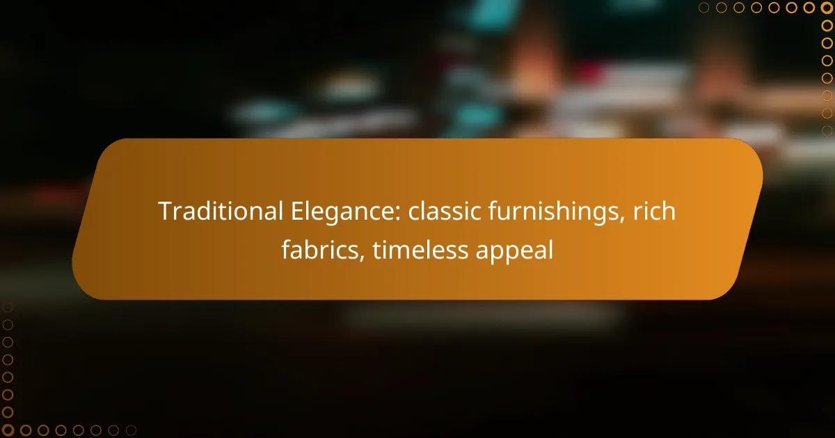 Timeless appeal in furnishings is characterized by enduring qualities that remain attractive and functional over time. Key aspects include quality craftsmanship, classic color palettes, and enduring design styles that transcend trends.